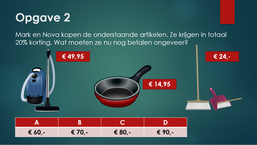 Kinderen houden van spelletjes! Laat ze daarom in tweetallen af en toe een rekenquiz spelen. Laat ze eerst alle opdrachten maken. Schat zelf even in hoeveel tijd ze voor elke vraag nodig hebben. Bespreek na afloop alle antwoorden.